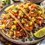 Delicious shrimp tacos topped with fresh pineapple salsa, perfect summer flavor experience