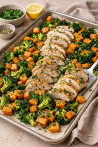 Chicken, Sweet Potato, & Broccoli Sheet Pan Dinner